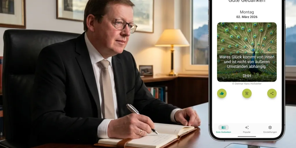 Mit der App Gute Gedanken bekommst du täglich einen inspirierenden Spruch oder eine Lebensweisheit von Dietmar Hans Hofstetter, der dir Kraft, Motivation und gute Laune schenkt. Perfekt, um den Tag bewusst positiv zu starten und neue Energie zu tanken.